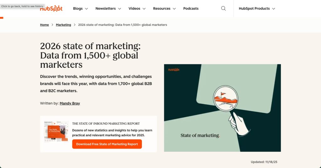 HubSpot asked me to create a series of content surrounding its annual State of Marketing report, which builds engagement and trust with its key audience. This piece outlined the top findings for 2026 and served as the pillar page.
